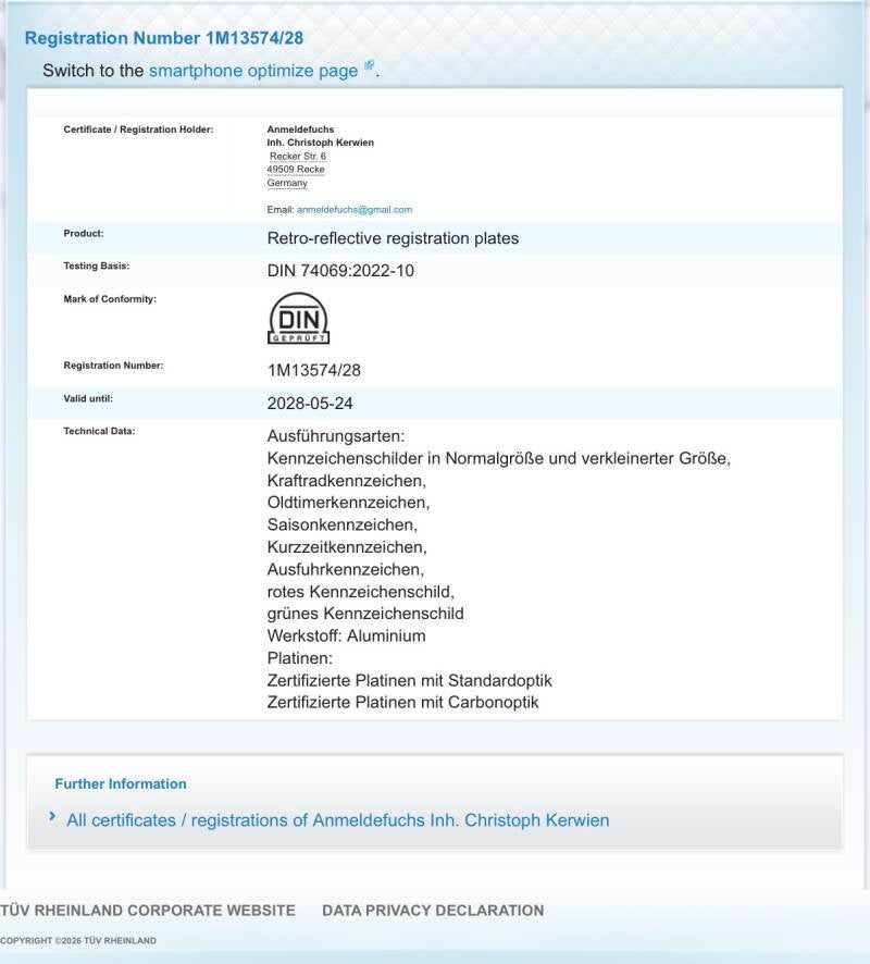 Informationen darüber erhalten Sie von uns oder der Zulassungsbehörde.